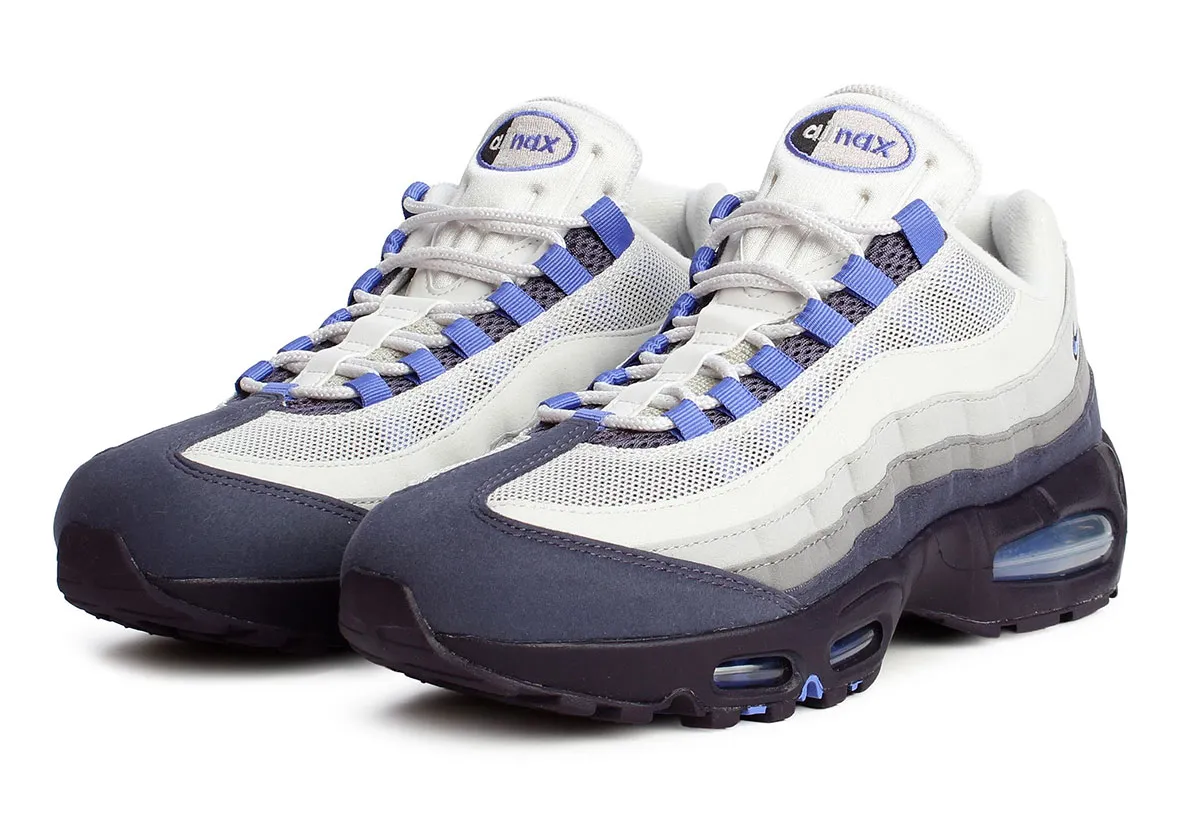 La Nike Air Max 95 OG « Pencil Point » reprend la formule gagnante des versions OG tout en y ajoutant sa touche personnelle. Le bleu marine occupe le bas de la chaussure, ancré sur le patch en daim inférieur et le pare-chocs. Les superpositions ondulées qui parcourent la silhouette déclinent différentes nuances de gris, du plus clair au plus foncé. Vous l’aurez compris, on reste dans un territoire familier.
