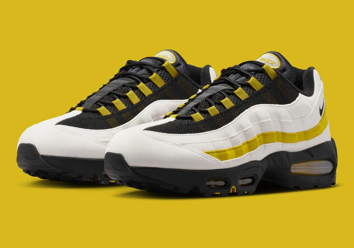 | Modèle : Nike Air Max 95 Coloris : Saffron Quartz Référence : HM4740-102 Date de sortie : printemps 2026 (janvier – mars) Prix : 190 $ Matières : daim blanc, accents noirs Détail signature : unité Air visible jaune safran Public : homme Distribution : Nike.com et revendeurs sélectionnés |