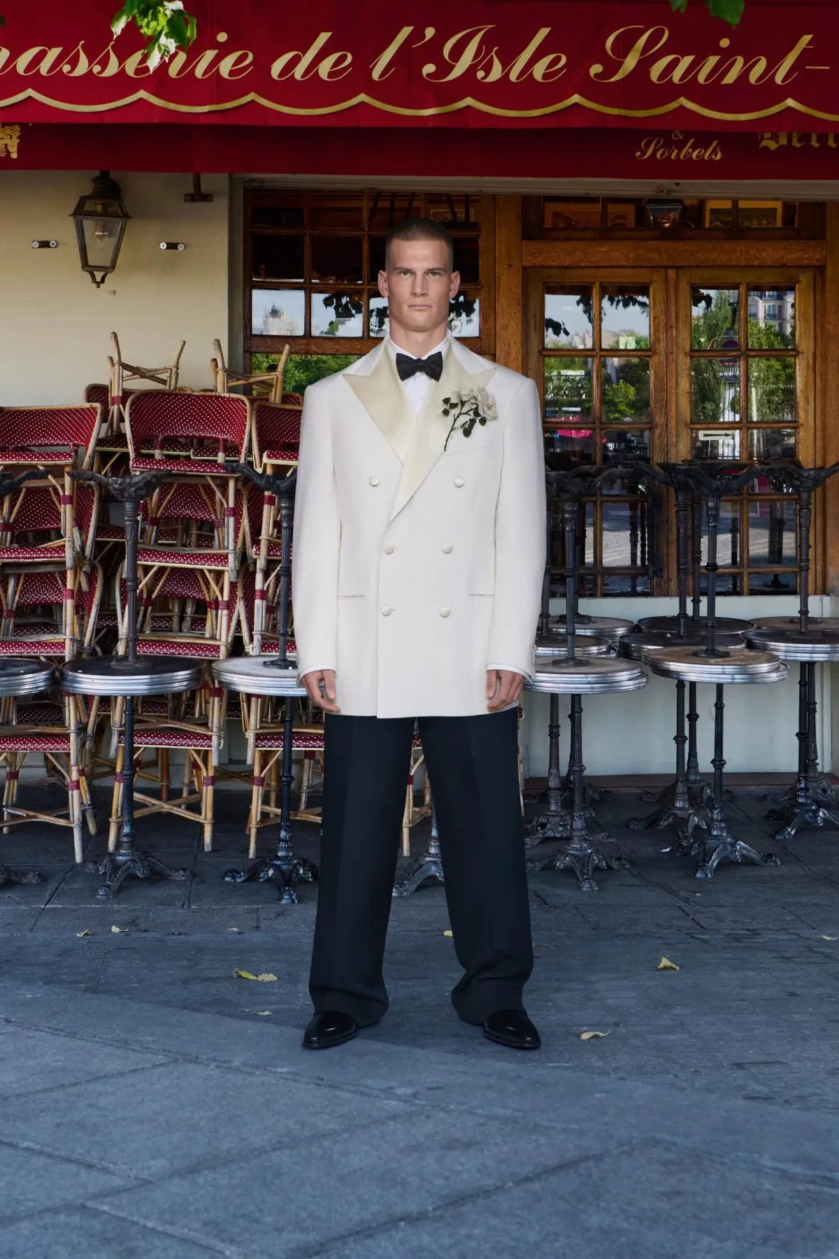 Le même costume, décliné ensuite sur des morphologies plus menues, dont celle de son époux, Loïck Gomez, appuie cette théorie audacieuse. « Je voulais souligner l’idée que ce n’est pas le vêtement qui définit la silhouette, mais le corps qui porte le vêtement », précise le designer. Cette approche bouleverse les fondements mêmes de la haute couture masculine, qui est traditionnellement obsédée par la précision de la coupe.