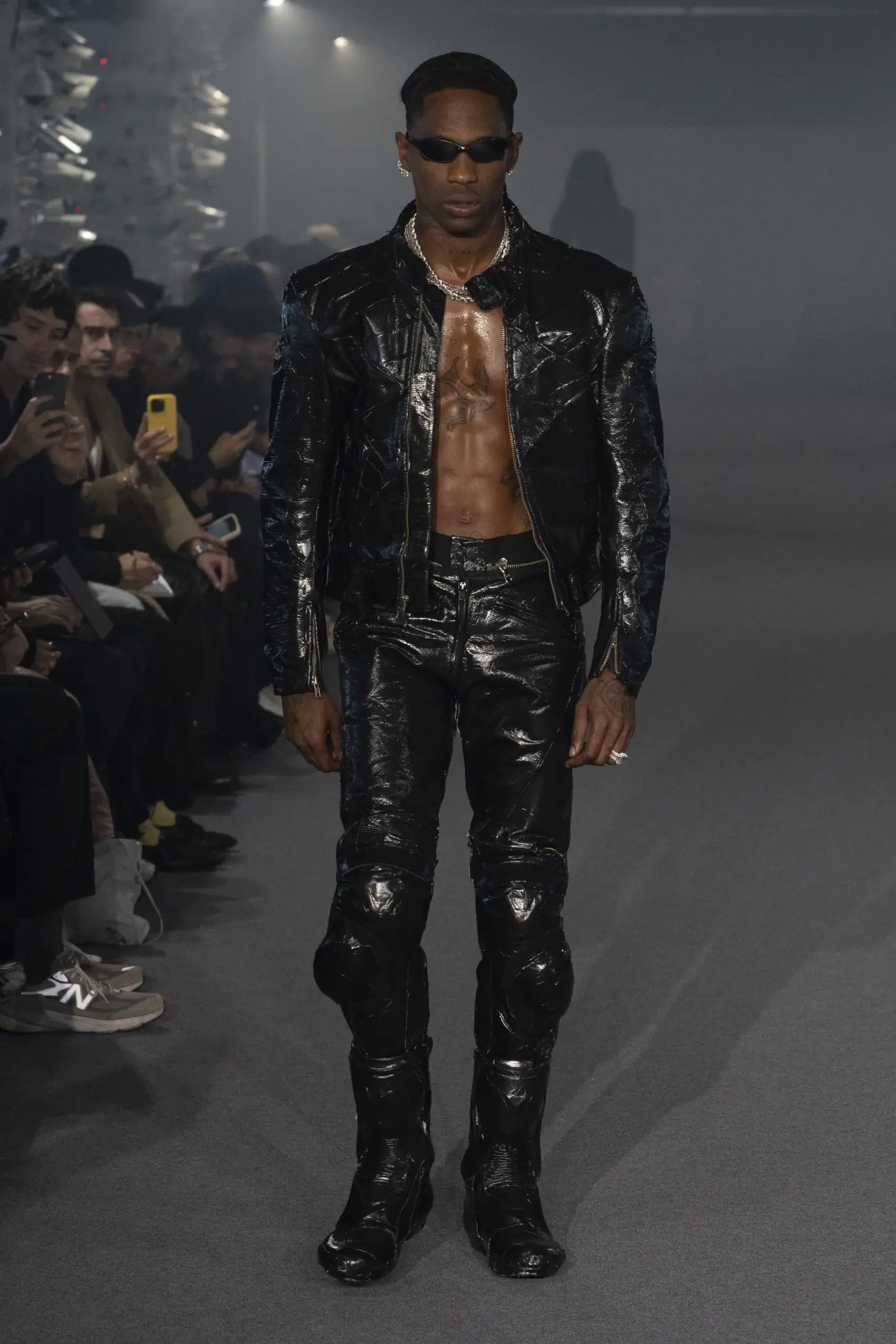 Les pièces les plus remarquables de la collection pour hommes comprenaient des cuirs de motard réimaginés, rappelant ceux portés par Travis Scott dans les premiers instants du défilé. Ces vêtements dégagent une énergie brute et masculine tout en conservant la signature de la marque. Les sweats à capuche surdimensionnés aux épaules exagérées ont fait leur retour, cette fois-ci avec une touche de fraîcheur qui s’inscrit dans le thème de la collection, à savoir la réutilisation et le renouvellement.