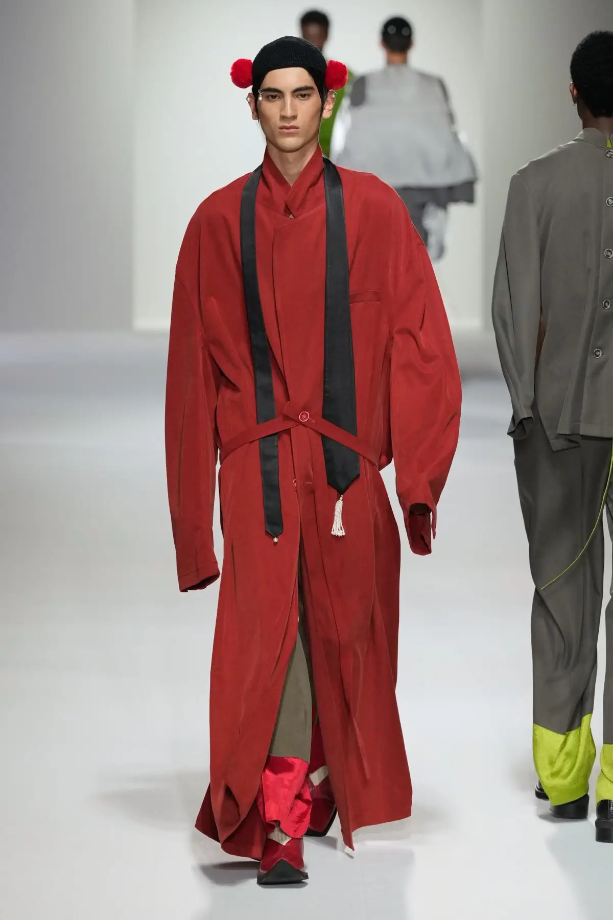 La collection Printemps 2025 de SEAN SUEN transcende les limites de la mode masculine conventionnelle, offrant une exploration poignante de la fluidité des genres et de l’interaction entre les esthétiques occidentales et chinoises. Inspiré par la légendaire star de l’Opéra de Pékin Mei Lanfang, connue pour ses portraits captivants de personnages féminins, Suen déconstruit avec brio les notions traditionnelles de masculinité, en créant une collection qui célèbre l’élégance et le pouvoir des vêtements qui défient toute catégorisation.
