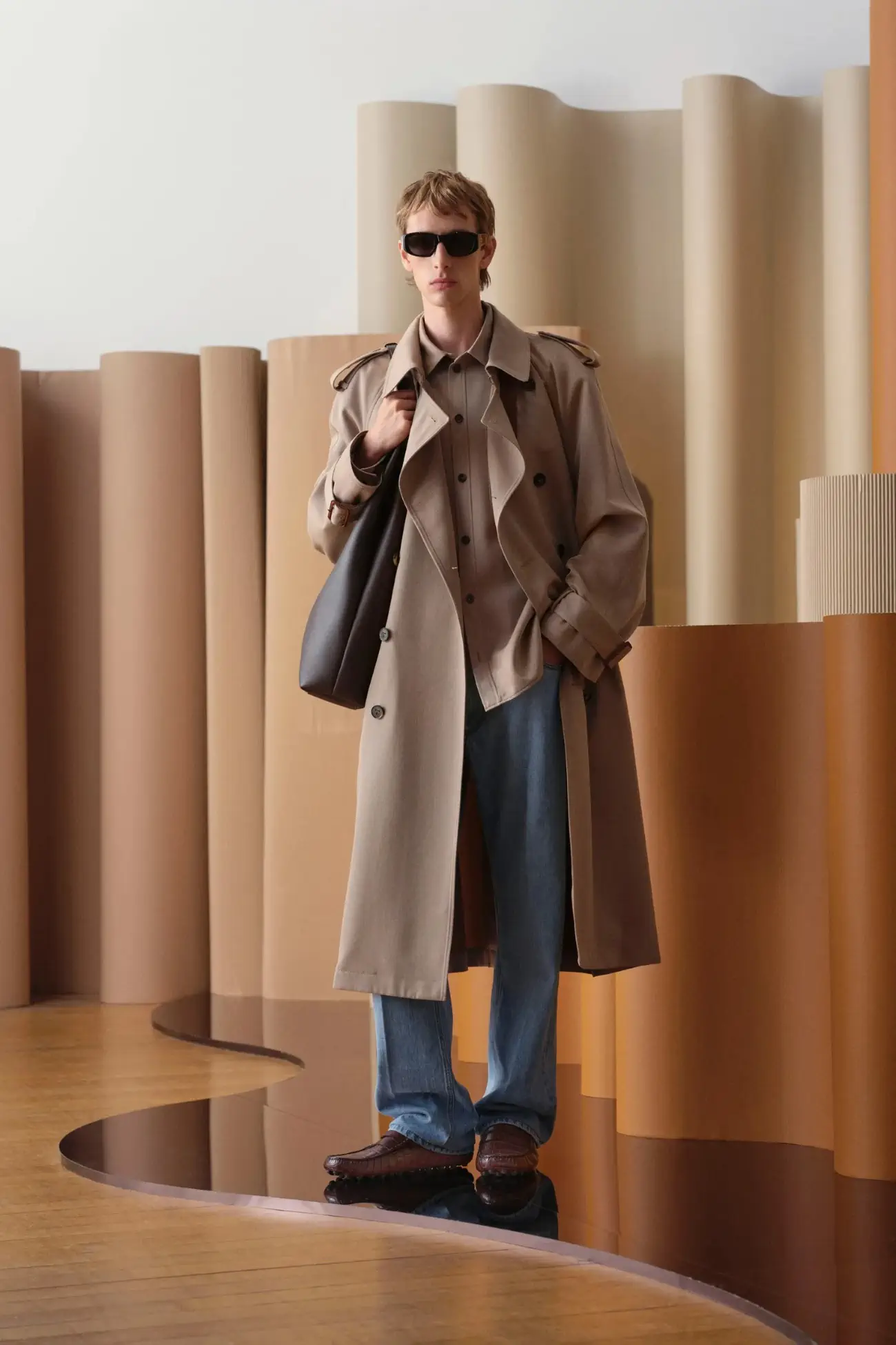 L’accent mis sur l’artisanat et les matériaux de haute qualité était évident tout au long de la collection. Les mannequins portaient des bombers décontractés et des vestes-chemises en Pashmy, un cuir luxueusement souple et léger, au toucher semblable à celui du cachemire. Cette matière exquise a également été utilisée pour le nouveau sac Di Bag et les emblématiques chaussures TOD’S T-Riviera.