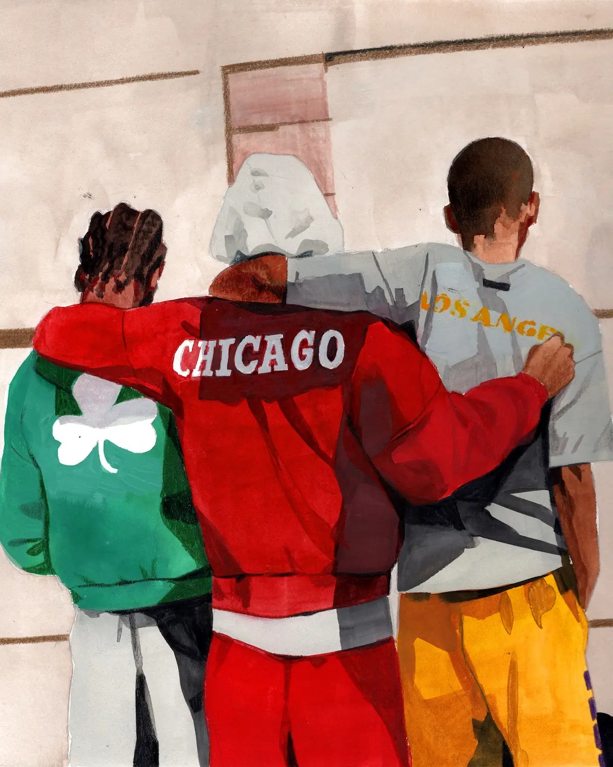 L’artiste explique son approche avec une clarté désarmante. « J’ai toujours été attiré par la représentation de la culture du basket-ball en dehors du jeu », confie Jacob Rochester. Il poursuit en précisant que son travail explore « ces moments qui parlent de la mode du basket-ball, de la façon dont on s’exprime. Ces moments où l’on se détend avec ses amis ou où l’on plaisante, assis sur le banc de touche. La chaleur de toujours porter en soi l’esprit du jeu. » Cette vision est en parfaite adéquation avec la philosophie de Fear of God, marque qui a toujours puisé son inspiration dans l’élégance décontractée des athlètes en dehors des terrains de sport.