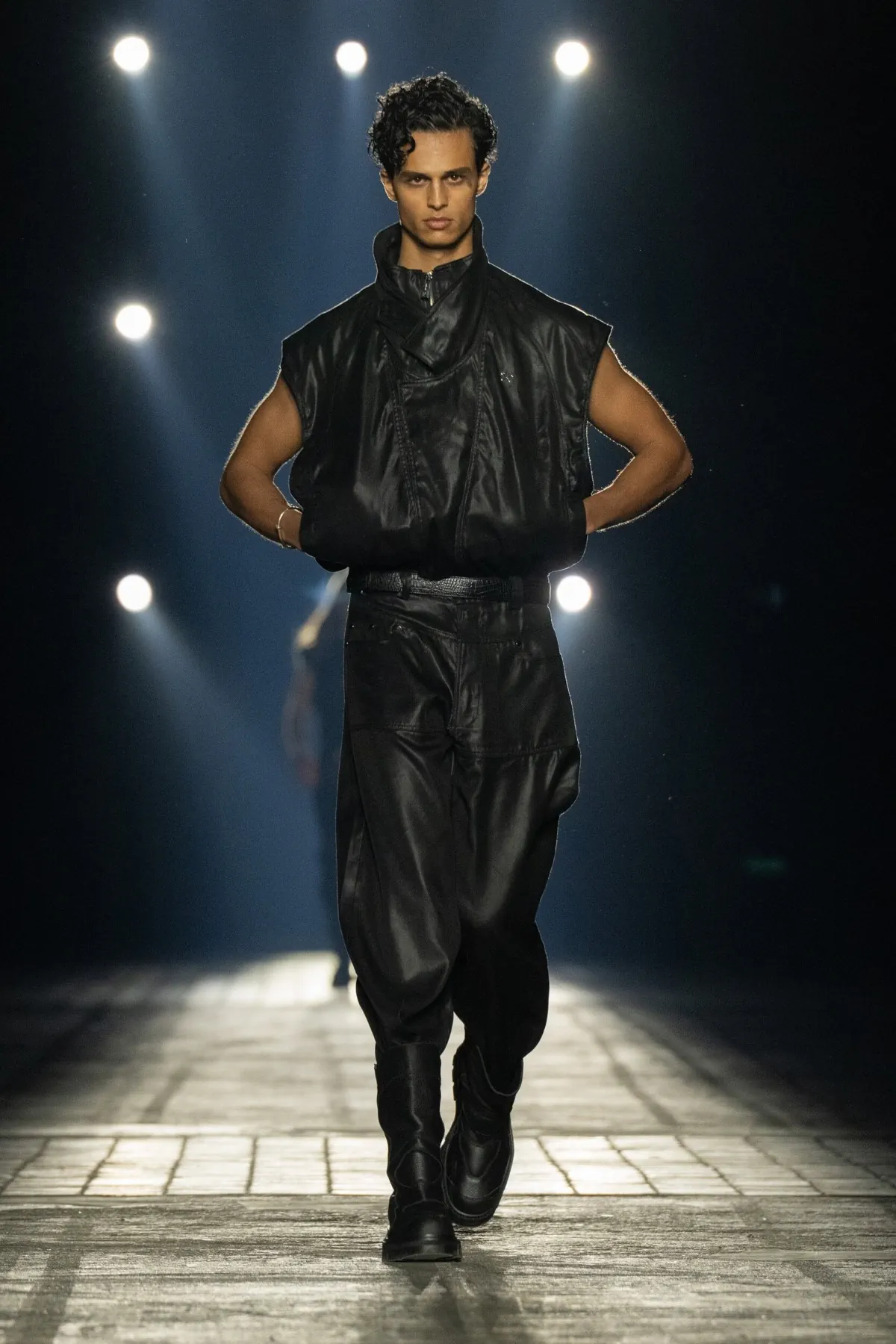 | 👔 Maison : GmbH 🎨 Directeurs artistiques : Serhat Işık et Benjamin Huseby 🧠 Concept : Friedensangst, la peur de la paix dans un monde gouverné par la violence 🏙️ Lieu : Berlin, au Kraftwerk, symbole de l’héritage industriel et club 🎶 Inspirations : scène musicale expérimentale berlinoise des années 1980 (DAF, Einstürzende Neubauten) 🧥 Silhouettes : volumes reproportionnés, fluidité, fausse fourrure, éléments modulaires ✊ Message : mode comme acte politique et refus du silence 🎂 Contexte : dixième anniversaire de GmbH |