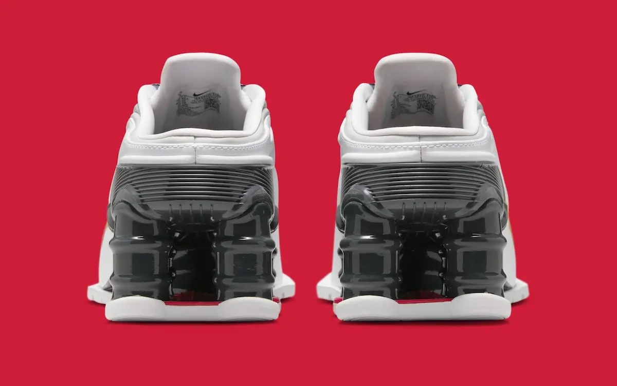 Les Martine Rose x Nike Shox MR4 « Metallic Platinum » et « Fire Red » sortiront durant la période de fin d’année 2025 sur Nike SNKRS et chez certains revendeurs sélectionnés à travers le monde.