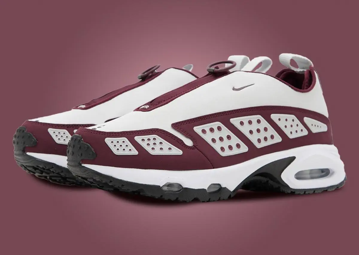 La Nike Air Max Sunder devrait faire son retour cet automne avec la sortie du coloris « Burgundy Crush ». Cette nouvelle itération fait suite aux coloris énergiques – Fuchsia Flash, Canyon Gold et Electric Green – qui ont marqué la résurgence de la chaussure au début de l’année. Le revendeur Size ? a offert le premier aperçu de ce colorway via Instagram, présentant un design bicolore qui diverge considérablement de ses prédécesseurs. Le coloris « Burgundy Crush » présente une base blanche accentuée par des superpositions bordeaux, un schéma qui s’aligne parfaitement avec le feuillage d’automne imminent. La chaussure présente également des détails noirs, notamment sur le logo Swoosh, la languette et la languette du talon. Cette palette sobre constitue un changement rafraîchissant par rapport aux précédentes versions de la sneaker, qui étaient imprégnées de néons.