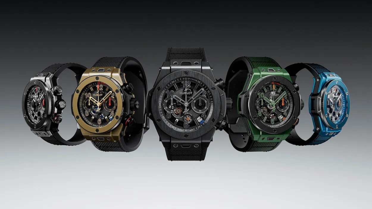 La Big Bang Reloaded se décline en cinq références de 44 mm, toutes animées par le calibre manufacture Unico HUB 1280. Chacune des cinq versions met en avant un matériau emblématique de la marque, dont certains célèbrent leurs propres anniversaires cette année : le concept All Black fête ses 20 ans, le Magic Gold ses 15 ans. Le chevauchement de ces jalons confère à cette collection une densité symbolique que peu de marques peuvent offrir en une seule présentation.